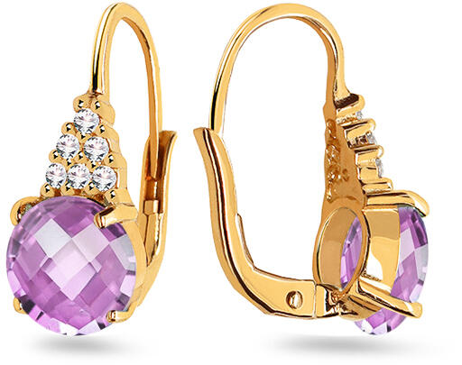 Arany fülbevaló szintetikus ametiszttel és cirkóniumokkal, modell IZ22492A