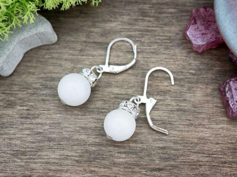 Fehér jáde gyönggyel díszített lógós fülbevaló. Amit a jádéről érdemes tudnod: A Jáde egy gyűjtőcsoportja a kövek egy fajtájának. Lelki gyógyhatása: Több örömmel és életkedvvel ajándékoz meg minket. Növeli a bennünk lévő szeretetet, a harmónia iránti igényünket. Testi gyógyhatás: Szabályozza a szervezet sav-bázis egyensúlyát, illetve vízháztartását is,