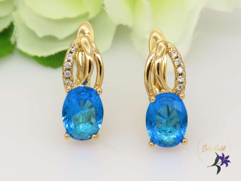 Antiallergén aranyozott köves fülbevaló Szin: 18K Méret: 15x5mm Zár: francia kapocs 11mm A forgalmazott divatékszerek alapanyaga nikkel és ólommentes ezért többnyire nem okoznak allergiás tüneteket, nyugodtan hordhatják fémérzékeny emberek is. Általában nem színezik a bőrt és más divatékszerekhez képest nagyságrendekkel jobb kopásállósággal rendelkeznek. A fehér (ez
