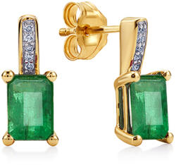 A 14 karátos sárga aranyból készült fülbevalók gyönyörű természetes smaragdokat kombinálnak briliáns csiszolású gyémántokkal, amelyek minőségüknek és ragyogásuknak köszönhetően elbűvölőek. Ideálisak különleges alkalmakra, ahol maradandó benyomást akarsz hagyni. Úgy tervezték őket, hogy ne csak szépek, hanem kényelmesek is legyenek. A biztonságos gombos rögz