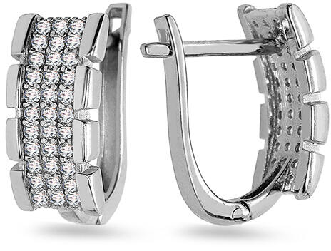 Ragyogjon a kifejező fehér arany vonalak és a cirkonfátyol extravagáns kombinációjával, amely elfedi őket. A fülbevalókat téglalap alakú elemek alkotják, amelyek össze vannak kapcsolva, és szó szerint elárasztják őket a tiszta cirkonok. Bűvölje el környezetét minden alkalommal. A kényelmes viselést a klasszikus angol patent biztosítja.