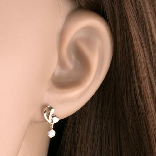 585 arany fülbevaló enyhén ívelt szabálytalan sárga arany szívkörvonallal, mely mellett domború szív található rózsaszín aranyból. A szívkörvonal alsó részében kerek csillogó átlátszó cirkónia található. A fülbevaló kapcsolása stekkeres. Fülbevaló mérete: 8 x 13 mmFülbevaló súlya: 0,6 gFémjelzéssel ellátott. Az ár egy párra vonatkozik.