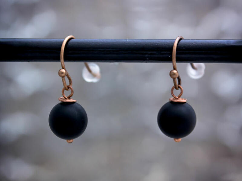 8 mm-es matt ónix ásvány gyöngyből, réz szerelékkel készült lógós fülbevaló. Letisztult ékszer, melyet önmagában is viselhetsz, de választhatsz a hozzá passzoló ásvány karkötők, medálok közül is. Amit az ónixról érdemes tudnod: Az ónix általában fekete, néha előfordulhat fehér, szürkés csíkozódással is. Lelki gyógyhatása: Az ónix egy védelmező kő , ame