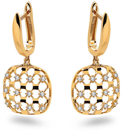 Négyzet alakú fülbevaló fényes lemezzel és cirkóniákkal, modell IZ31409