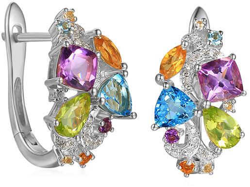 Fehér arany fülbevaló drágakövekkel és gyémántokkal 0,090 ct, modell IZBR619ANHR