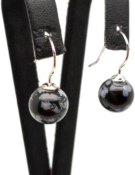 Obszidián hópehely fülbevaló (bedugós golyó Ásvány fülbevaló) Amit az obszidiánról érdemes tudnod: Sötét téli este, még a Hold sem világít. Kinézünk meleg lakásunk ablakából és látjuk az utcai lámpa fényénél, hogy nagy, kristályos szemekben szállingózik a hó. Ilyen hatású a hópehely obszidián megjelenése is. Az obszidián vulkanikus kőzet, amely a hirtelen k