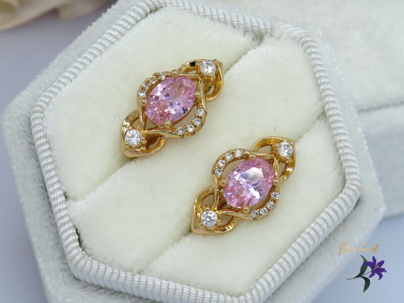 Gold Filled hosszúkás rózsaszin köves fülbevaló körbe pici cirkóna kövek díszítik Szin: 18K Méret: 18x8mm Zár: francia kapocs mélysége 10mm A forgalmazott divatékszerek alapanyaga nikkel és ólommentes ezért többnyire nem okoznak allergiás tüneteket, nyugodtan hordhatják fémérzékeny emberek is. Általában nem színezik a bőrt és más divatékszerekhez képest nagyságre