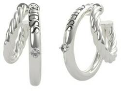 A női fülbevalók Guess UBE70018 már első pillantásra elvarázsolnak egyedi megjelenésükkel. A modell ezüstszínű kialakítása gyönyörűen csillogó megjelenésű. A fülbevalót két karika jellemzi - a kisebbik kötött stílusú, a nagyobbik a Guess márkanévvel és egy apró kristállyal van kiegészítve. A Guess fülbevalók kiváló minőségű sebészeti acélból készültek.