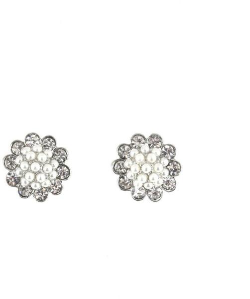 Csillogó strasszos és gyönggyel díszített virág formájú apró fülbevaló. Kapcsolódás típusa beszúrós. átmérője: kb. 1,2 cm
