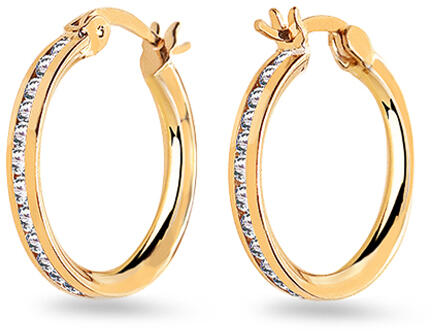 A finom gyűrűk a fülében nyalogatják, köszönhetően a sugárzó cirkóniás műsornak. A tiszta cirkonok szépsége és fényessége harmonikus összjátékot hoz létre a sárga arany meleg tónusaival. A bepattintható zár garantálja a biztonságos és kényelmes viseletet.