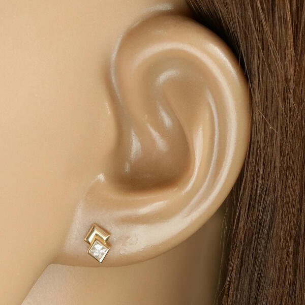 Az 585 sárga arany fülbevaló egy átlátszó cirkónia négyzetből áll, amelyet egy vékony vonal határol. A keretbe foglalt cirkónia egy nagyobb négyzetet fed át, amelynek a felülete sima és fényes. Fülbevaló stekkeres zárszerkezettel. A fülbevaló mérete: 7 x 5 mmA fülbevaló súlya: 0,5 gFémjelzéssel ellátva. Az ár egy párra vonatkozik.