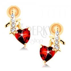 Bedugós fülbevaló 14K aranyból, hajlított vonallal apró, átlátszó cirkóniákkal, amely alatt egy piros gránát függ szív alakra csiszolva. Biztoságos viselését stekker biztosítja. A fülbevaló méretei: 7 x 10 mmA fülbevaló súlya: 0,6 gFémjelzéssel ellátott. Az ár egy párra vonatkozik.