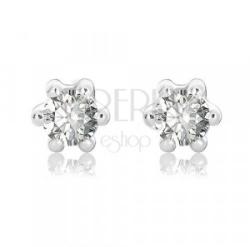 375 fehér arany fülbevaló melynek közepén egy átlátszó kerek, cirkónia található hatkarmos foglalatban. A fülbevaló felülete sima, fényes. Biztonságos viselését stekkeres zárszerkezet teszi lehetővé. Fülbevaló mérete: 5 mmFülbevaló súlya: 0,5 gFémjelzéssel ellátott. Az ár egy párra vonatkozik.