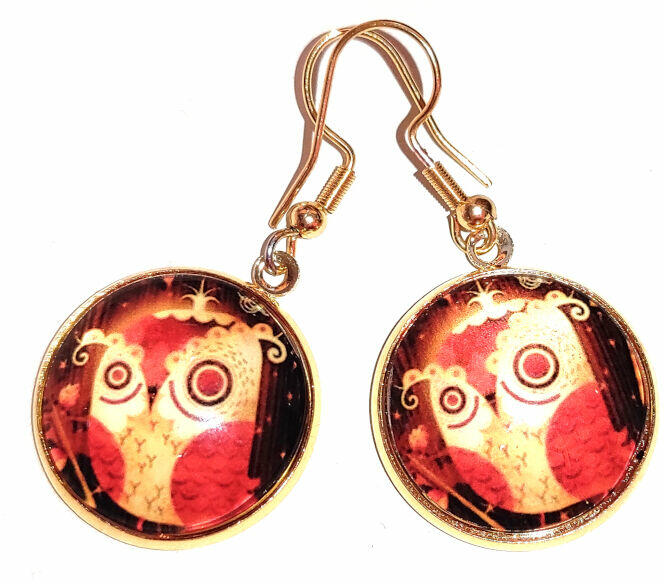 Bagoly üveglencsés fülbevaló, 1 pár. Választható arany és ezüst színben . Egyedi, szép, kézzel készült üveglencsés ékszer, akár ajándékba is ideális. Param éterek : A minta alapja fém, rajta domború üveg (20 mm). Fémrészek anyaga rozsdamentes acél. – A fülbevaló akasztós vagy franciakapcsos, készlet szerint küldjük. Ez a termék rendelésre készül, ezért a sz