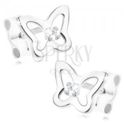 Fülbevaló 9K fehér aranyból csillogó pillangó körvonallal. A körvonal közepébe egy csiszolt, átlátszó cirkónia van ültetve. A hátsó oldal üreges. Biztonságos viselését stekker biztosítja. A fülbevaló méretei: 7 x 6 mmA fülbevaló súlya: 0,4 gFémjelzéssel ellátott. Az ár egy párra vonatkozik.