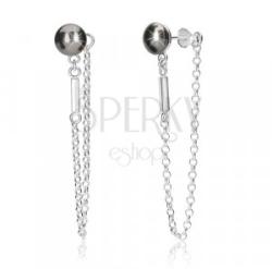 A 925 ezüst fülbevaló egy hematit színű félgömbből áll, amelyen egy lánc függ. A láncot egymásra merőlegesen összekapcsolt, kerek szemek alkotják. A lánc vége stabilan a stekkerhez van rögzítve. A láncot a fülbevaló elülső részén egy téglalap alakú, fényes sáv díszíti. Stekkeres zárszerkezet. A fülbevaló mérete: 8 x 55 mmA fülbevaló súlya: 3,36 g Fémjelzés