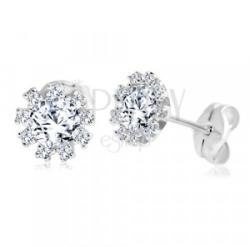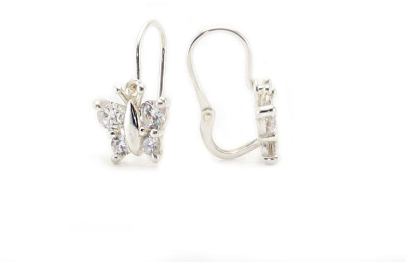 Gyönyörűen szikráznak a rájuk eső fényben ezek a fehér cirkónia kövekkel díszített ezüst gyermek fülbevalók.