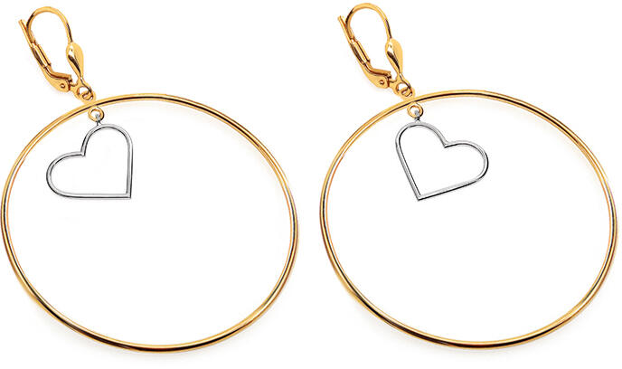 Kétszínű arany karika fülbevaló szívvel 4,5 cm, modell IZ24352
