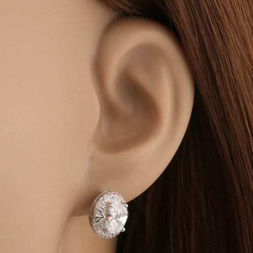 A 925 ezüst, ródiumozott felületű fülbevalót egy ovális, csiszolt, átlátszó cirkónia alkotja, amelyet szélesebb, díszes körvonal szegélyez, csillogó cirkóniákkal és fényes levelekkel díszítve. Biztonságos viselését stekker teszi lehetővé. Fülbevaló méretei: 10 x 11 mmFülbevaló súlya: 3,3 gFémjelzéssel ellátott. Az ár egy párra vonatkozik. A ródiummal kezelt f