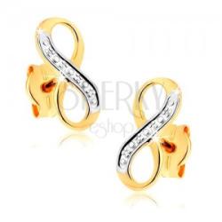 Bedugós fülbevaló 9K aranyból végtelen szimbólummal - fekvő nyolcas kétszínű kivitelezésben, amely egyik része fehér arany a másik pedig díszesen gravírozott. A fülbevaló felülete ródiummal kezelt. Biztonságos viselését stekker biztosítja. A fülbevaló méretei: 4 x 10 mmA fülbevaló súlya: 0,34 gFémjelzéssel elllátott. Az áár egy párra vonatkozik. A ródiummal kez
