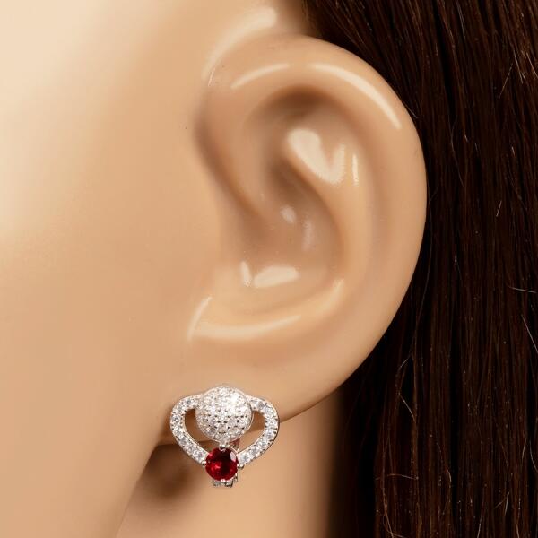 Itt vannak ezek a lenyűgöző fülbevalók, amelyek díszei között egy nagyobb, ovális, piros cirkon található, három kisebb cirkóniával kiegészítve. Ezek nyíl alakban vannak elrendezve, és a fő kő fölé vannak szerelve.