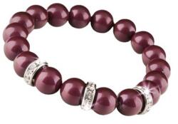 Eredeti Swarovski® gyöngyből készült karkötő, fehér Swarovski® rondella kristályokkal díszítve. A gyöngy burgundi-vörös árnyalatú. Alkalmi ruhához is hordható, elegáns szín. A karkötő könnyen fel- és levehető, mivel rugalmas fűzőszálra van felfűzve. M-es méret, kb. 18,5cm, ami az általános női méret. A csomag tartalmaz fűzőszálat és egy darab tartalék gyöng
