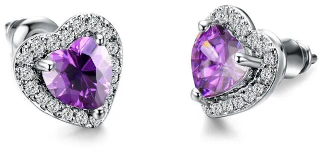Herz Fülbevaló Szépséges Herz fülbevaló verhetetlen áron. Az ékszer könnyen kombinálható. A fülbevaló cirkónia ékkövekkel díszített és nem tartalmaz nikkelt, ezér érzékeny bőrű emberek is viselhetik. Tulajdonságok: A fülbevaló mérete: 0,9cm x 0,8cm Díszítése: cirkónia ékkövek Anyaga: fém és cink ötvözete Szín: Lila
