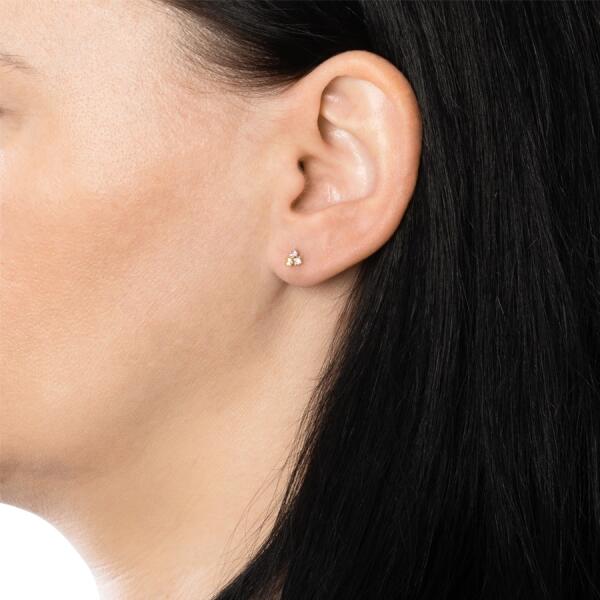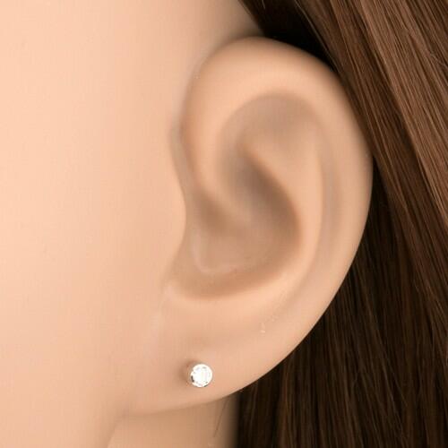 14K fehér arany fülbevaló csillogó átlátszó cirkóniával és kerek alakkal, mely fényes sima foglalatba van helyezve. A fülbevaló biztonságos viselését stekker biztosítja. A fülbevaló átmérője: 3 mmSúly: 0,36 gFémjelzéssel ellátott. Az ár egy párra vonatkozik.