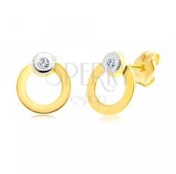 Az 585 kombinált arany fülbevalót keskeny sárga arany karika alkotja, amelynek felülete tükörfényes és sima. A karika felső részén egy fehér arany foglalat helyezkedik el, amelybe egy csillogó kerek, átlátszó cirkónia van beültetve. Biztonságos viselését stekker teszi lehetővé. Fülbevaló méretei: 8 x 9 mmFülbevaló súlya: 0,5 g Fémjelzéssel ellátott. Az ár egy pár
