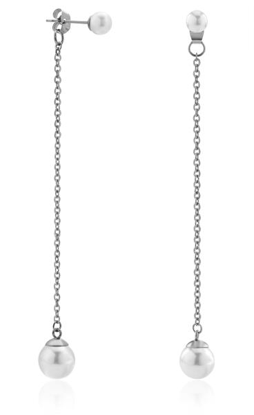 Aranyszínű fülbevaló, melyet csillogó fehér tekla gyöngyös és fehér cirkónia kristályos függő díszít. A kristályok karmos foglalatban helyezkednek el. Tartós ékszer, fürdéskor nem kell levenni, nem feketedik. Antiallergén ékszer. 18K arany színben kapható. Fülbevaló teljes hossza: 26 mm. Kapcsos rész belső hossza: 10 mm. Tekla gyöngy átmérője: 6 mm. Az antiallergé