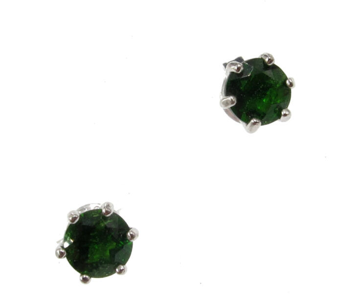 Nagyon szép áttetsző, fazettált kerek krómdiopszid drágakő beszúrós fülbevaló. A krómdiopszid vélt hatása