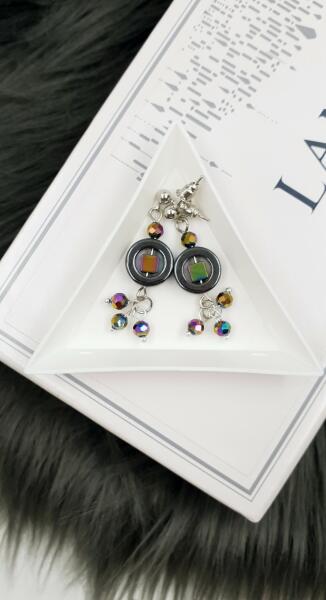 Hematit ásványból készült divat fülbevaló apró kristályokkal.