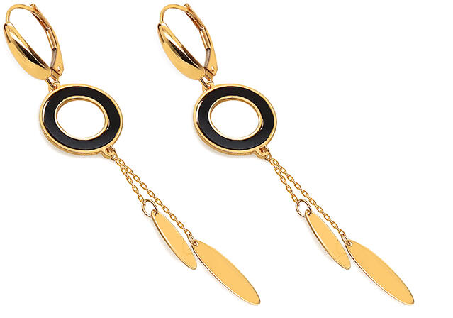 Arany lógó fülbevaló fekete gyűrűkkel, modell IZ23779