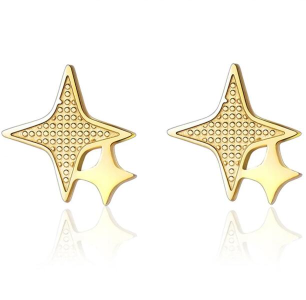 Double Star Fülbevaló Szépséges, beszúrós Double Star fülbevaló szuper áron. Az ékszer nem tartalmaz nikkelt, ezért érzékeny bőrű emberek is viselhetik. Tulajdonságok: A fülbevalók mérete: 1cm x 1cm Anyaga: Nemesacél Szín: Arany