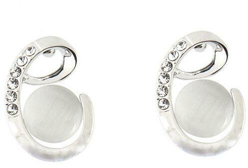 Ezüstszínű, strasszkövekkel díszített fülbevaló. Teljes hossza: kb. 2,5 cm, Kapcsolódás típusa: beszúrós.