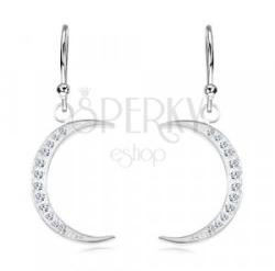 A 925 ezüst fülbevaló keskeny holdsarlóból áll, amelyet beültetett kerek, átlátszó, csiszolt felületű cirkóniák díszítenek. A fülbevaló afriaki horgokon függ. Hold méretei: 12 x 18 mmFülbevaló teljes hossza (kapoccsal): 33 mmFülbevaló súlya: 2,1 gFémjelzéssel ellátott. Az ár egy párra vonatkozik.