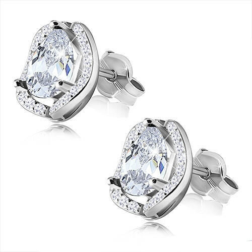 A 925 ezüst, ródiumos felületű fülbevaló, áttetsző cirkóniából álló könnycsepp alakban. A nagy cirkóniát egy három karmos foglalat tartja, és csillogó, áttetsző cirkónia szegély díszíti. Biztonságos viselését stekker tesz i lehetővé. Fülbevaló méretei: 12 x 14 mmFülbevaló súlya: 4,7 gFémjelzéssel ellátott. Az ár egy párra vonatkozik. A ródiummal kezelt fel