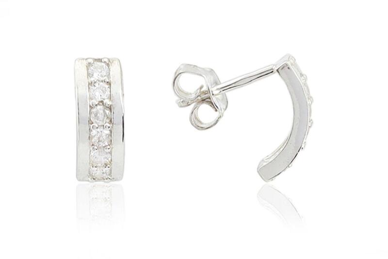 Egyszerre elegáns és modern ez a 925-ös tisztaságú ezüstből készült, apró fehér cirkónia kövecskékkel díszített fülbevaló! Ajánljuk minden olyan hölgynek vagy leányzónak, aki szeretne egy aprócska új ékszert, melyet örömmel viselhet a legkülönbözőbb alkalmakra, a legkülönbözőbb ruhákhoz és öltözetekhez. :) Ezüst fülbevaló bedugós elegánsan ívelt széles
