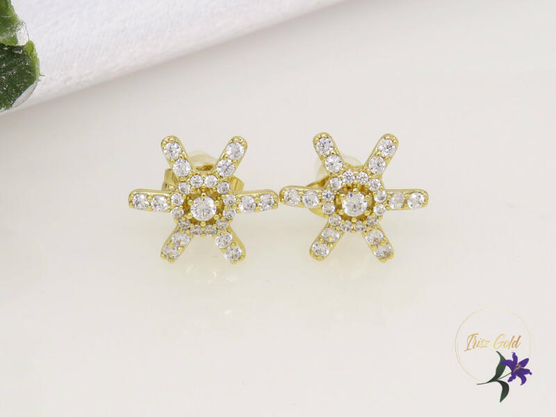 Antiallergén csillag alakú fülbevaló fehér cirkóna kövekkel Szin: 14K Méret: 15x15 mm Bedugós A forgalmazott divatékszerek alapanyaga nikkel és ólommentes ezért többnyire nem okoznak allergiás tüneteket, nyugodtan hordhatják fémérzékeny emberek is. Általában nem színezik a bőrt és más divatékszerekhez képest nagyságrendekkel jobb kopásállósággal rendelkeznek. A feh
