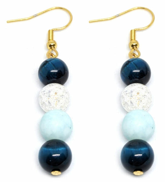 Az ékszer ásványai és tartozékai: – 8 mm-es matt kék jade gyöngyök – 8 mm-es kék tigrisszem gyöngyök – 8 mm-es fehér roppantott hegyikristály ásványok Akasztó anyaga rozsdamentes acél. Áruházunkban találsz hozzáillő karkötőt is. Az ékszerben található ásványok jótékony hatásai: HEGYIKRISTÁLY Testünkre: A hegyikristály a legerősebb gyógyító kristály, am