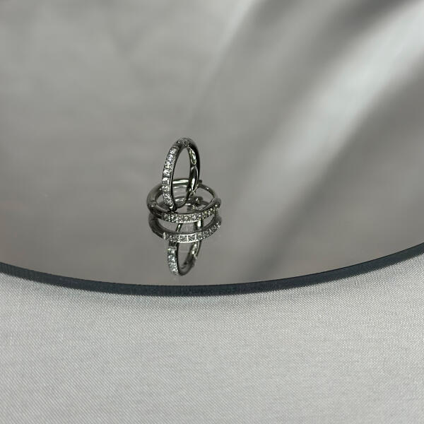 Emeld ki stílusodat ezzel a csodálatos ezüst nemesacél karika fülbevalóval, amelyet több ragyogó cirkónia kő díszít. A klasszikus karika dizájn modern frissességet kap a cirkónia kövek káprázatos csillogásával, amelyek gyémántszerű fénnyel ragyognak, kiemelve a fülbevaló eleganciáját. A rozsdamentes acél tartósságot és ellenállóságot biztosít, hosszú élettarta