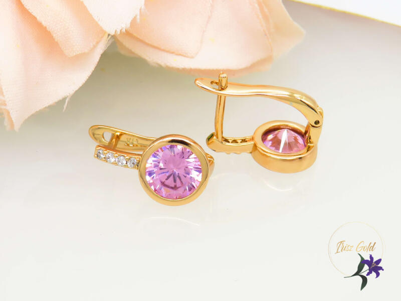 Gold Filled gyönyörű rózsaszín köves fülbevaló Szin: 18K Méret: 15x7mm Zár: francia kapocs A forgalmazott divatékszerek alapanyaga nikkel és ólommentes ezért többnyire nem okoznak allergiás tüneteket, nyugodtan hordhatják fémérzékeny emberek is. Általában nem színezik a bőrt és más divatékszerekhez képest nagyságrendekkel jobb kopásállósággal rendelkeznek. A fehé