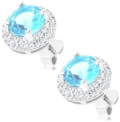 925 ezüst fülbevaló ródiumozott felszínnel kerek csiszolt akvamarinkék színű cirkóniákkal, melyet kettős apró cirkóniákkal kirakott szegély vesz körül. A fülbevaló kapcsolása stekkeres. Fülbevaló átmérője: 10 mmFülbevaló súlya: 3,16 gFémjelzéssel ellátott. Az ár egy párra vonatkozik. A ródiummal kezelt felület az ékszer tartósságát, keménységét fényét n