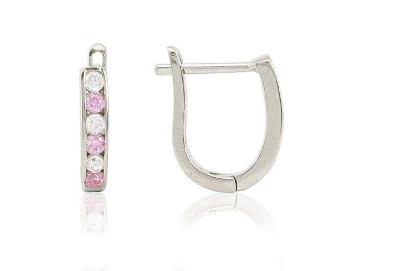 Ezüst fülbevaló franciazáras keskeny kivitelű apró kövekkelAnyaga: 925 ezüstBevonat: ródiumbevonatosMéret: belső hasznos terület: 9 x 7 mmSzélesség: 2mmKapocs: franciazárasKő: rózsaszín és fehér apró cirkóniaKövek száma: 3 rózsaszín és 3 fehér kő / dbSúly: 1.6 g