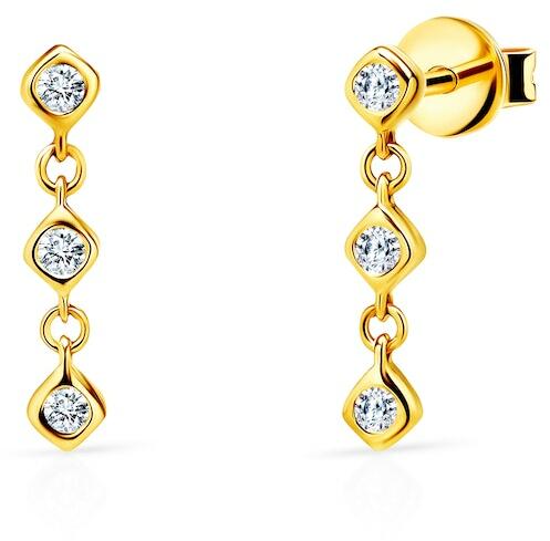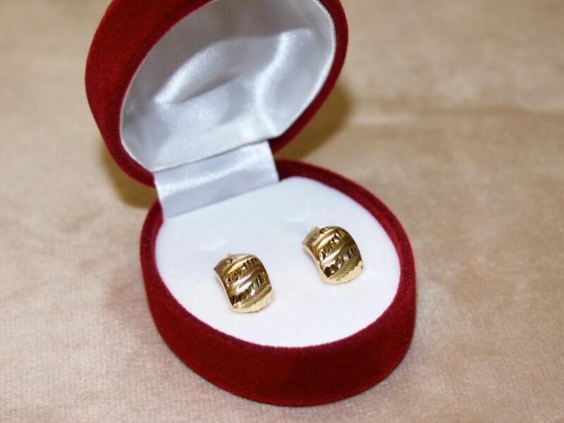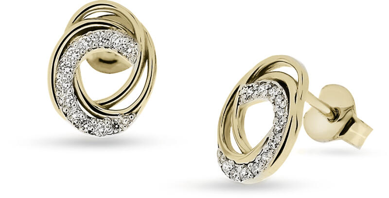 Modern stílusú, csillogó véséssel és mattírozással ékített, könnyített kialakítású, domború arany fülbevaló.