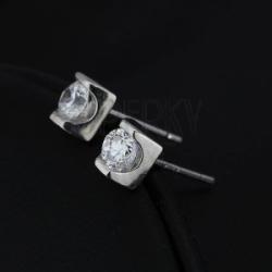 Sterling ezüst bedugós fülbevaló, ferdén csiszolt trapéz alakú téglácskával, melybe egy ragyogó, tiszta cirkónia van ágyazva. Biztonságos viselését kaucsuk stekkerek biztosítják. A fejecske méretei: 5 x 5 x 3 mmA cirkónia átmérője: 4 mmA fülbevaló súlya: 0,9 gAz ár egy párra vonatkozik. Fémjelzéssel ellátott.
