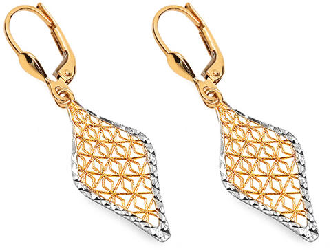 A Delwyn fülbevalók varázslatos szépsége és csillogása elbűvöli Önt egyedi formatervezésüknek és a sárga és fehérarany tökéletes színeinek köszönhetően. A rombusz alakját és a fonott mintát részben ródiummal bevont szegély egészíti ki, amelyet gravírozás emel ki. A használt rögzítés a Monacella - női patent.