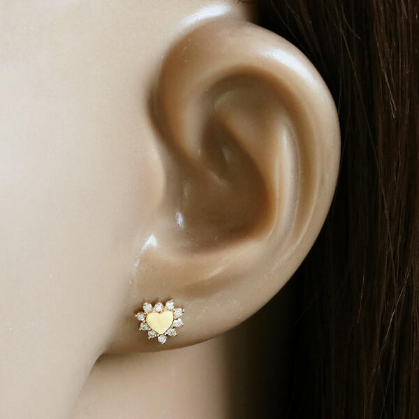A 14K arany fülbevaló egy kis szív, tükörsimára polírozott felülettel. A szív kerületét virágszirmok szegélyezik, amelyekbe átlátszó, csillogó cirkóniák vannak beágyazva. A fülbevaló stekker zárral rendelkezik. A fülbevaló mérete: 7 x 7 mm A fülbevaló súlya: 0,6 g Fémjel - Van. Az ár egy párra vonatkozik!