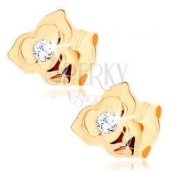 Bedugós 375 arany fülbevaló virág alakban, mely három nagyobb és három kisebb sziromból tevődik össze. A virág közepén egy csiszolt kerek tiszta cirónia van beágyazva. Biztonságos viselését a stekker biztosítja. A fülbevaló méretei: 6 x 6 mmA fülbevaló súlya: 0,4 gFémjelzéssel ellátott. Az ár egy párra vonatkozik.