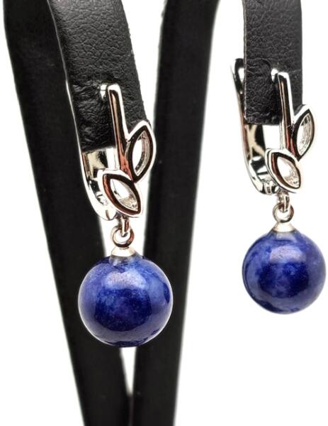 Kvarc fülbevaló (golyó levél szinezett kék zárt Ásvány fülbevaló) Egyedi ásvány ékszer.